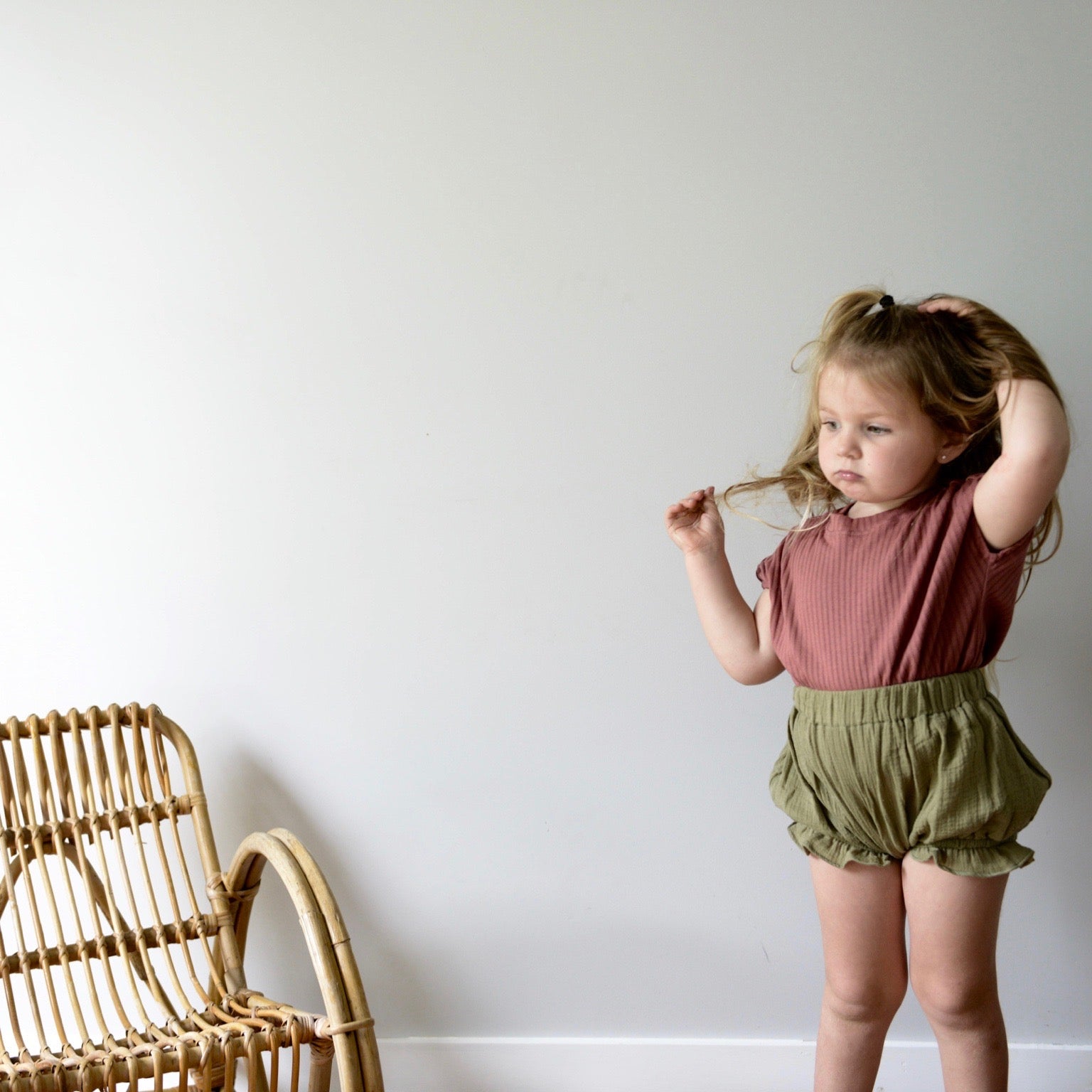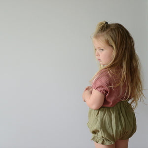 The Harriet shorts are made from a cotton blend and features a thick elastic band and ruffled legs. Super cool for summer wear or team up with tights for winter.